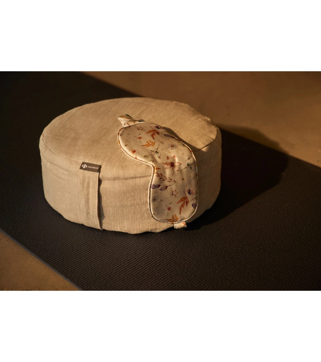 The Halfmoon Silk Eye Mask was designed to calm, relax and destress. The luxuriously soft silk cover and weighted wheatberry fill relaxes the face and facial muscles by applying gentle and soft pressure to the eyes. The perfect wellness tool during restorative yoga, before bed, after screen time, or while travelling. The lavender scent elevates the sensory experience of your relaxation session. Use at room temperature or heat up in the microwave for an added warm touch and invigoration of the lavender aroma.