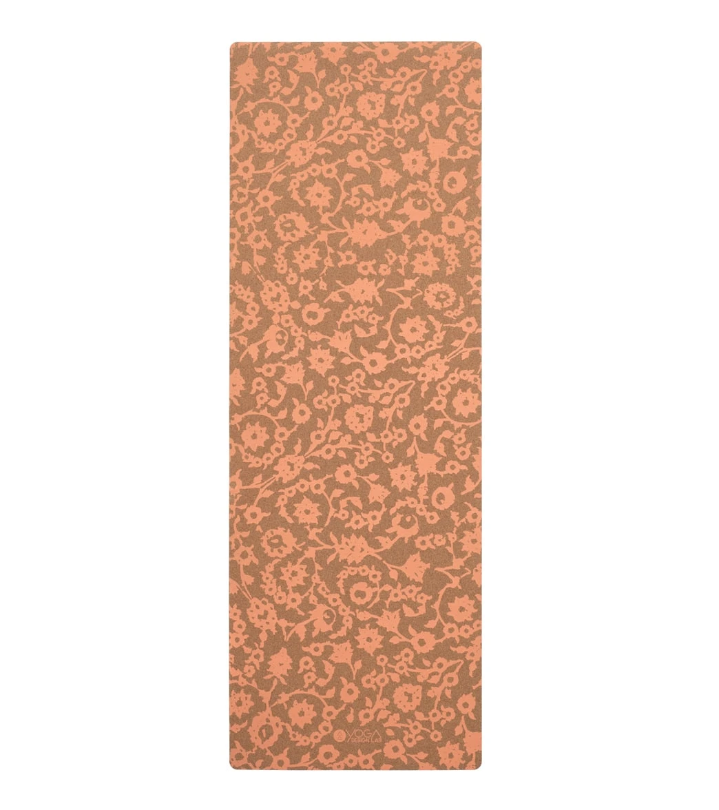The Yoga Design Lab Cork Yoga Mat 3.5mm Floral Batik Coral supports any practice, from a high-intensity workout to a gentle flow, and is even suitable for shoes!